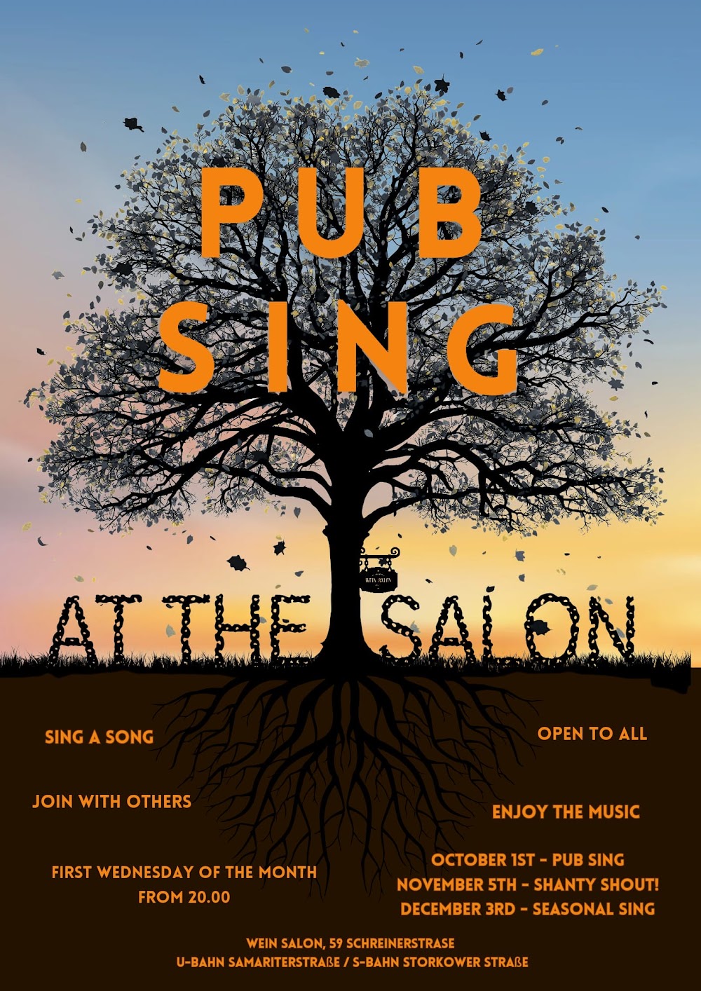 Open Session. Pub Sing at Wein Salon, 59 Schreinerstraße.  Every first Wednesday of the month.  Open to all, Enjoy the Music. #singing