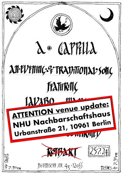 All singers and listeners welcome Vogt's Bierexpress Mehringdamm 32-34 10961 Berlin